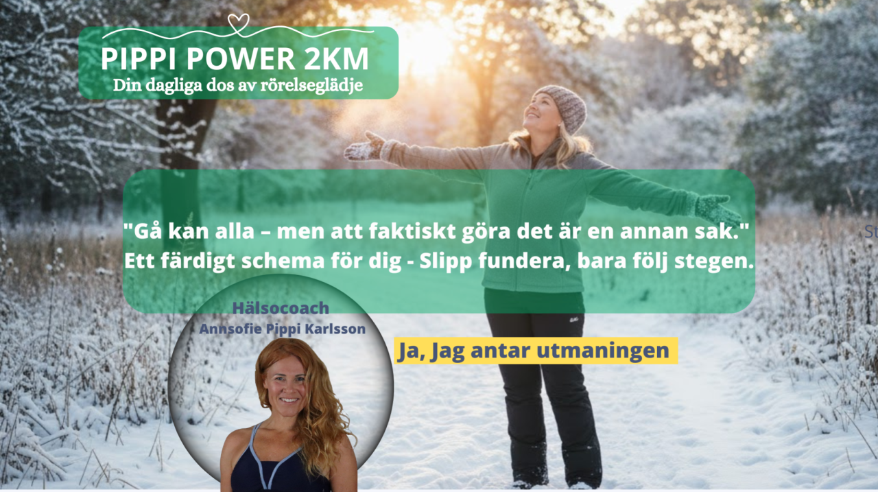 Det är precis därför jag skapat Pippi Power 2KM. Här finns inga krav på dyra kläder eller timslånga pass. Det handlar om den dagliga dosen av rörelseglädje. 2 kilometer, i din takt, med dina förutsättningar.