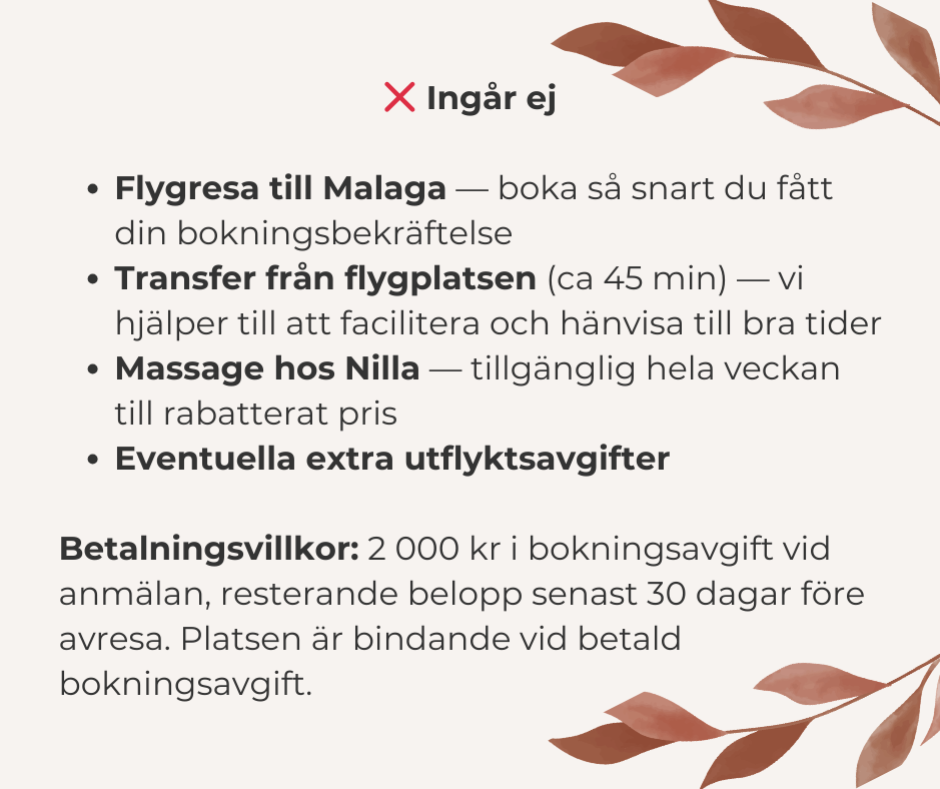 Yoga & Hälsoresan för dig som söker en verklig hälsovändpunkt — en vecka som förändrar kropp, sinne och liv. Välkommen till en exklusiv och handplockad grupppresa till Spaniens soliga kust.